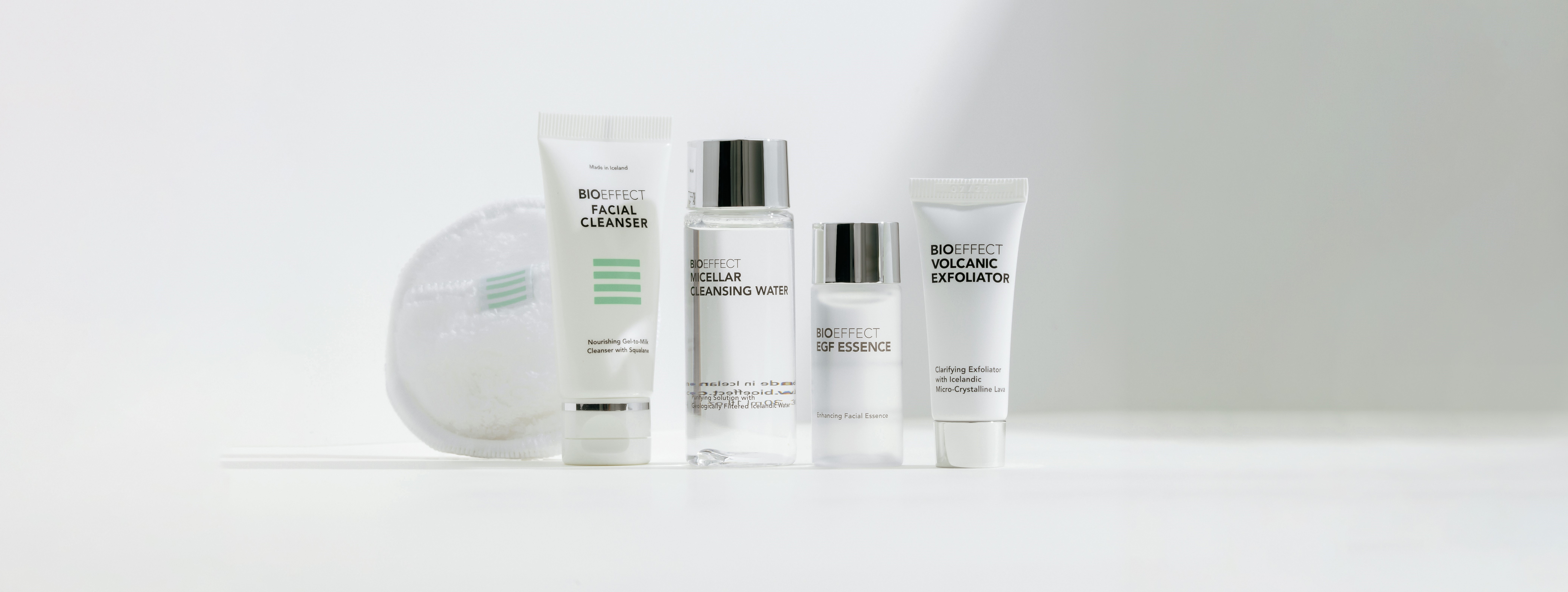 Micellar Cleansing Water (30ml): Vættu bómullarskífu með BIOEFFECT Micellar Cleansing Water. Strjúktu mjúklega yfir andlit, háls og augnsvæði þangað til öll óhreinindi hafa verið fjarlægð af húðinni.