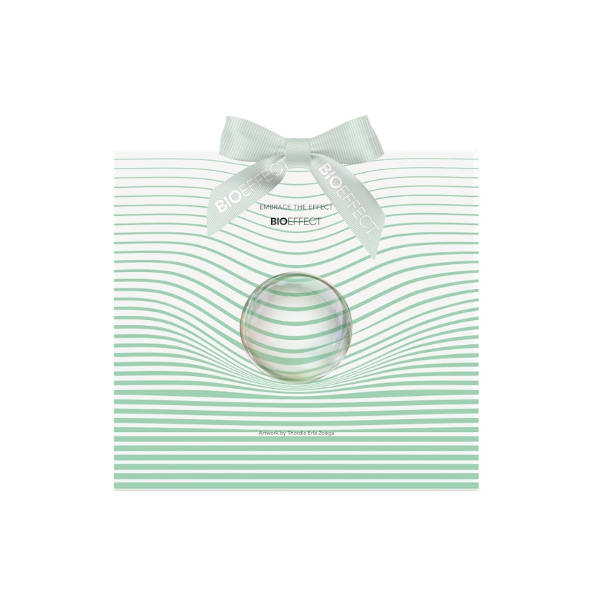 Gjafapokinn er fullkominn fyrir hvaða tilefni sem er, hvort sem að gjöfin er hugsuð fyrir afmæli, jól eða sem tækifærisgjöf. Pokanum fylgir grænn BIOEFFECT borði til að loka honum á handhægan og fallegan hátt.