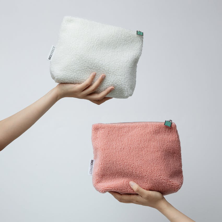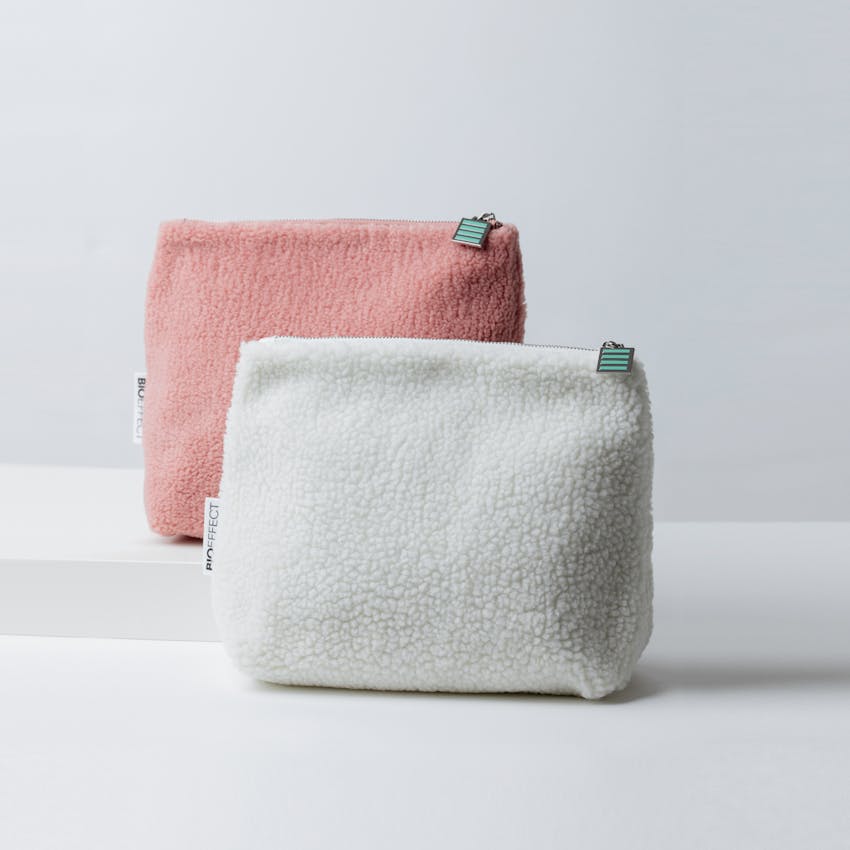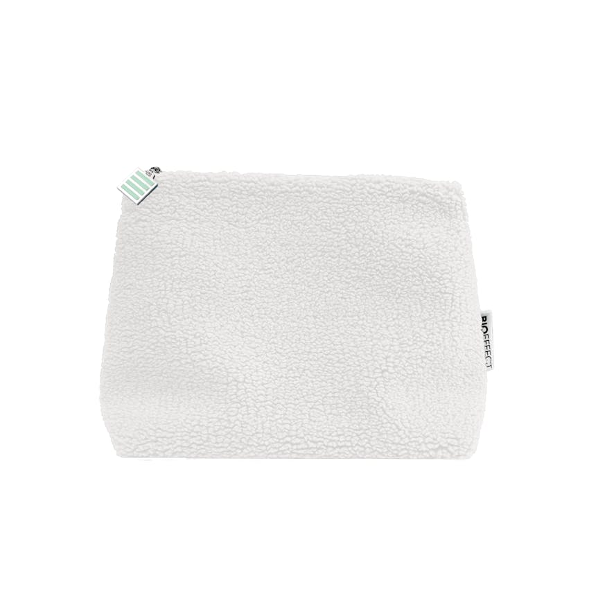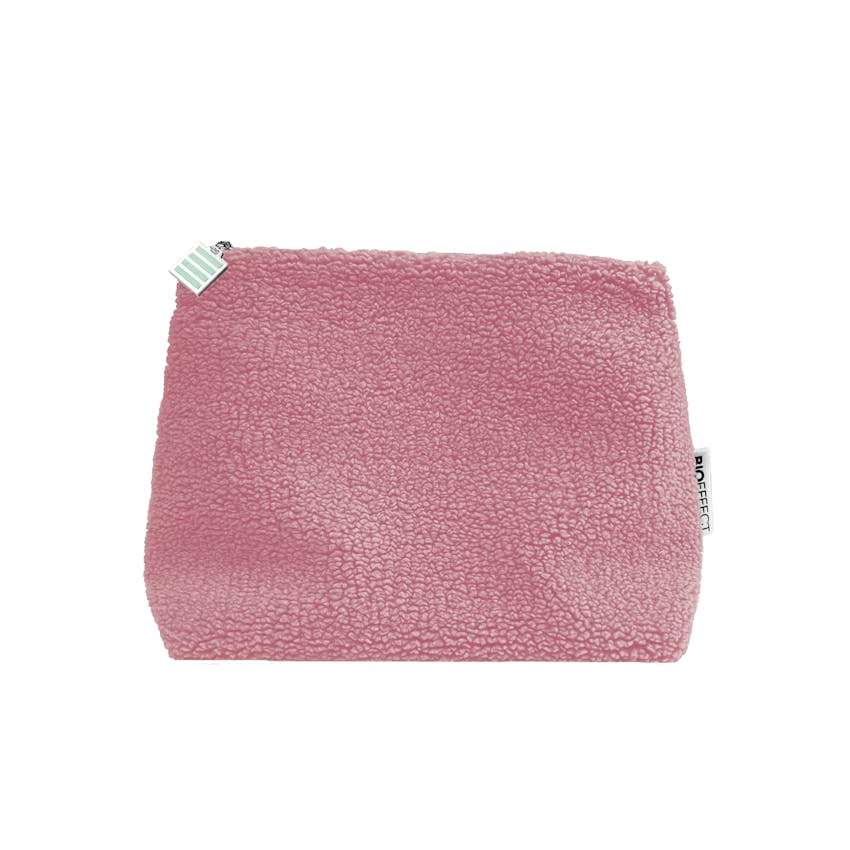 Falleg, smart og mjúk snyrtitaska úr endurunnu, loðnu flísefni, með fóðri úr 100% bómull. Taskan er rúmgóð og lokast með rennilás úr málmi. Kjörin til hversdagslegra nota eða í ferðalagið. Töskuna má þvo í þvottavél.