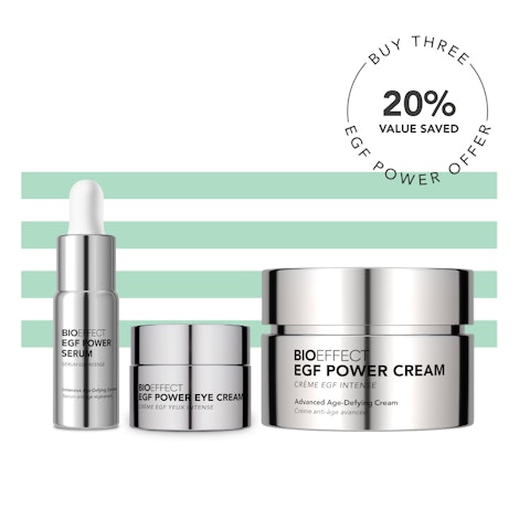 Step 3. Follow by applying the EGF Power Cream to the face, neck and décolleté. Massage gently in smooth, circular motions. Wait 3-5 minutes before applying sunscreen or makeup.